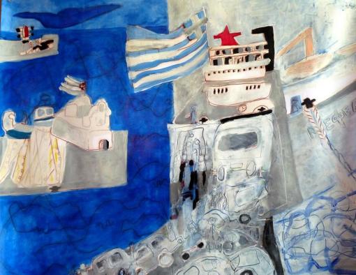 Départ du Néphély . Huile sur papier (50 / 65 cm)